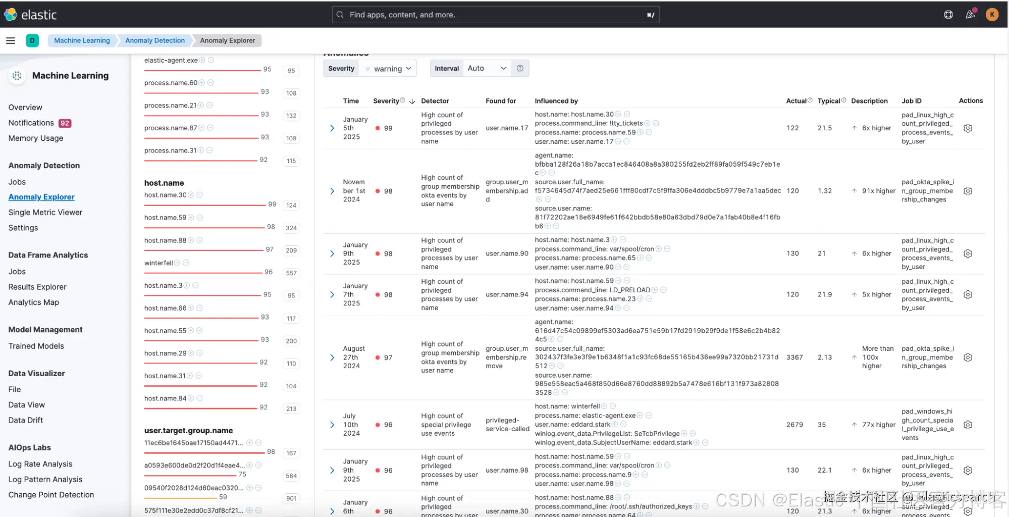在这篇博客中,我们介绍了全新的 特权访问检测(Privileged Access Detection) 功能,它利用 Elasticsearch 组件在复杂的 IT 环境中识别异常的特权活动。我们解释了这些组件在检测包架构中的作用,并提供了安装说明和关键步骤,帮助你开始分析并应对由机器学习任务检测到的异常行为。