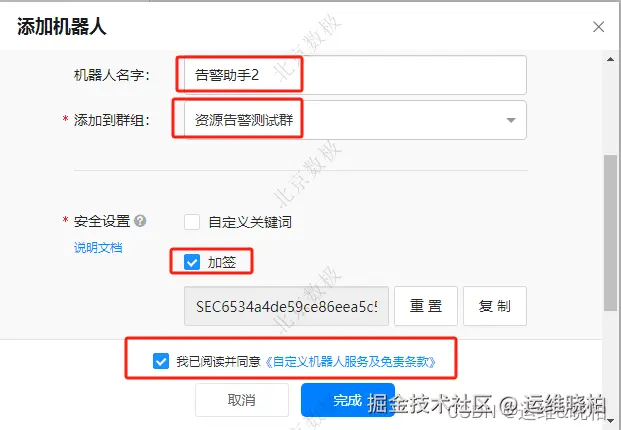 - 添加一个告警机器人