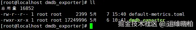 dmdb_exporter和default-metrics.toml都上传到服务器进行启动。