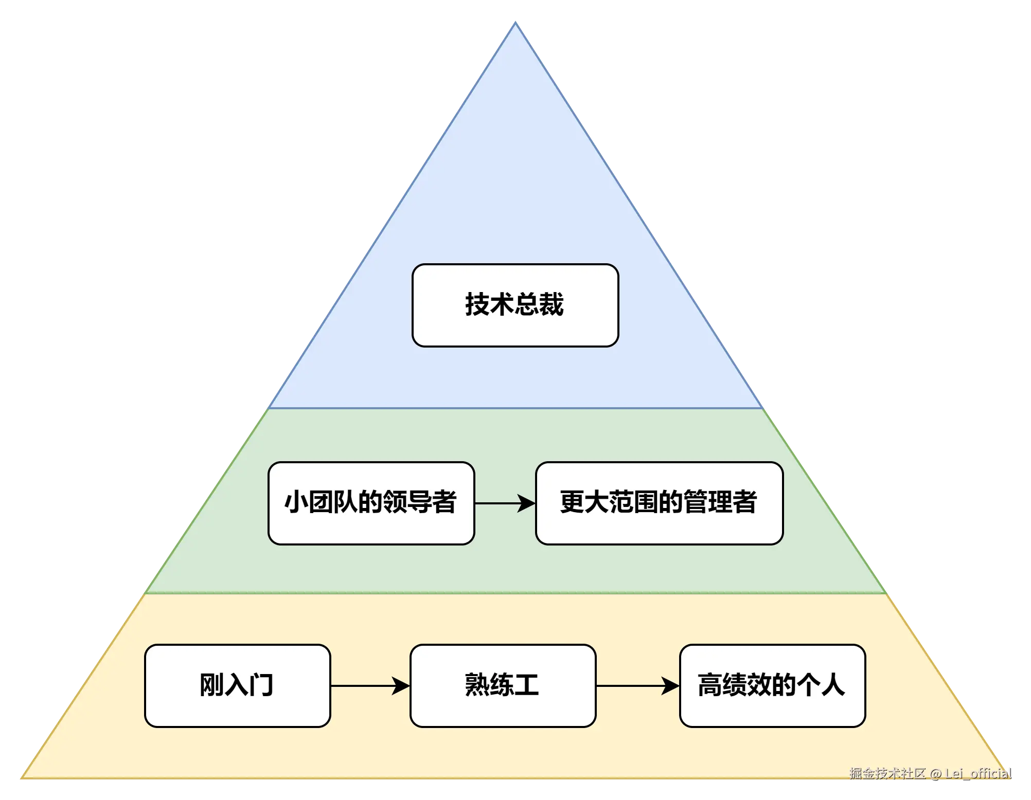 而在互联网软件研发行业,作为程序员,其一生的成长路径可以概括为: