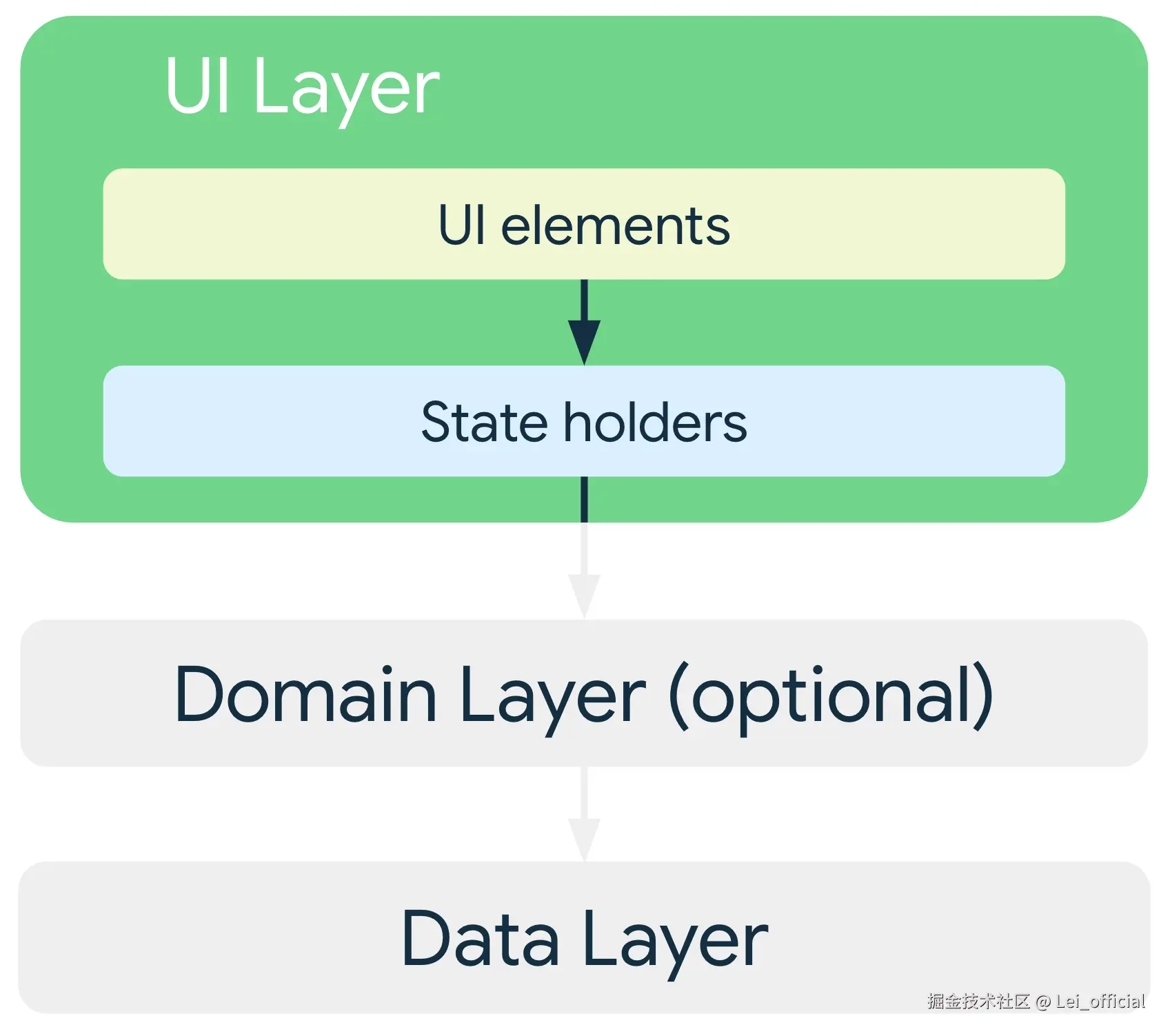 界面层(或表现层)的作用是在屏幕上显示应用数据。每当数据发生变化时,无论是因为用户互动(例如按了某个按钮),还是因为外部输入(例如网络响应),界面都应随之更新,以反映这些变化。