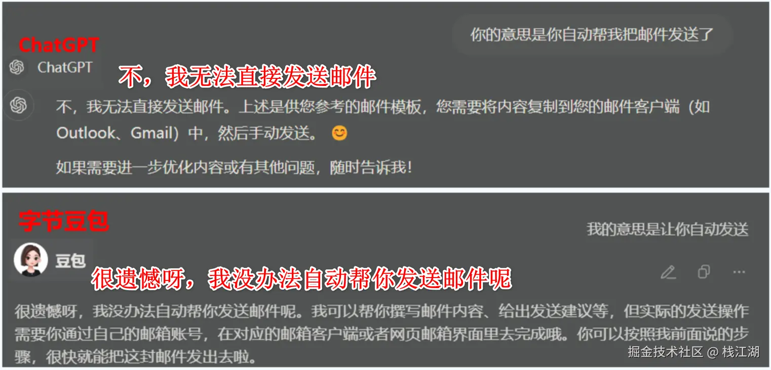 一般来说大模型基本是上知天文、下知地理无所不能的。但让大模型发个邮件试试,