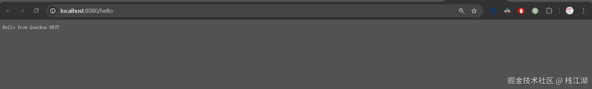 http://localhost:8080/,你会看到页面显示“Hello, Quarkus!”。