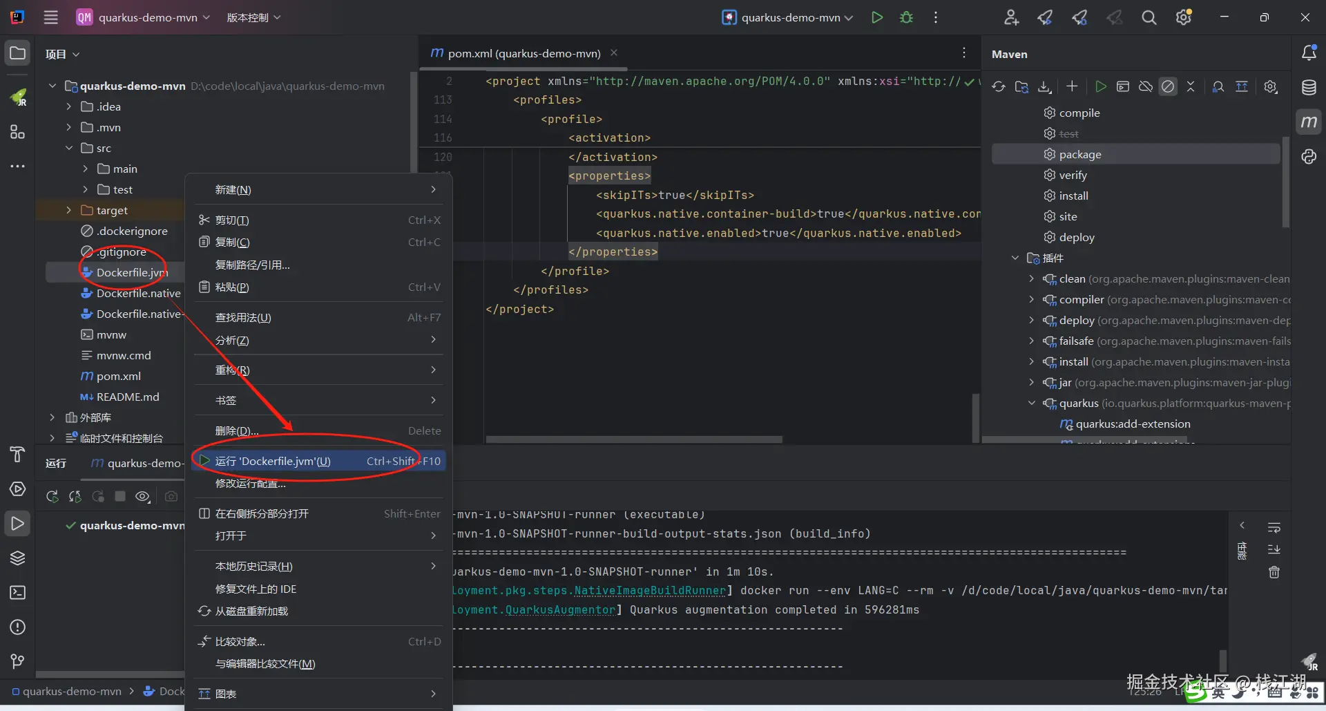 一般打包为 quarkus 项目要分成使用本地 GraalVM 与不使用本地 GraalVM