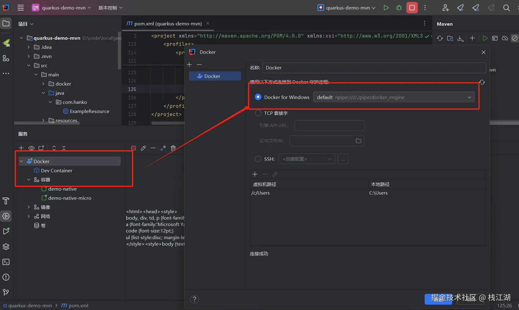 这种方式就简单多了,把本地可远程 docker 启动后,在 idea 里配置好
