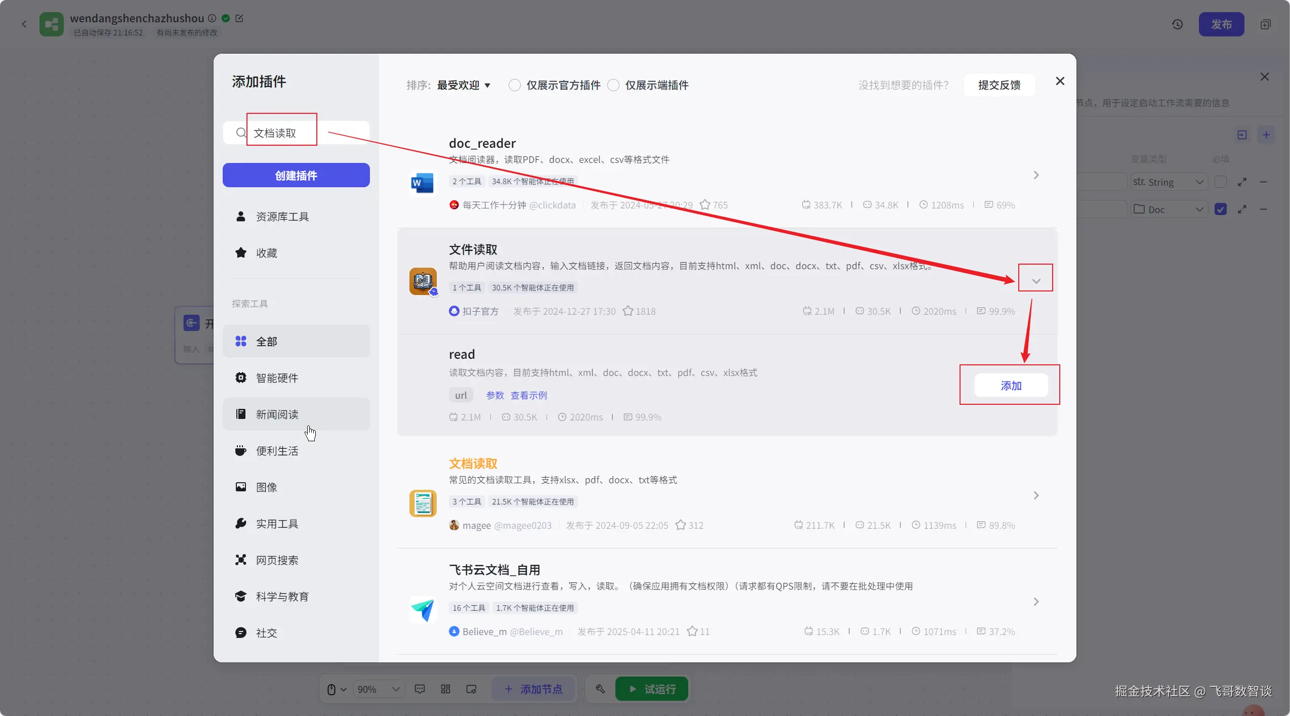 - 读取 Word 文档,通过插件“文件读取”实现。