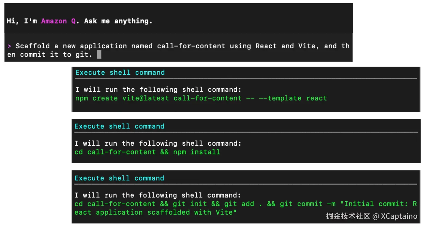 虽然 Amazon Q 开发者 CLI 允许开发者使用智能命令补全和一些自然语言辅助,但该代理现在可以主动执行命令,使用开发者系统上安装的工具,如编译器、包管理器和 AWS CLI。这种新功能意味着该工具现在可以自主完成更多任务,而不仅仅是提供提示和指令。它现在使用逐步推理来分解复杂问题,并在整个开发过程中通过多轮对话与开发者进行协作。