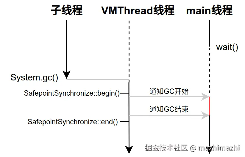 这里要注意,VMThread完成GC开始函数和结束函数的回调,并且是在安全点内回调的,按理来说,此时的业务线程已经不再运行了。