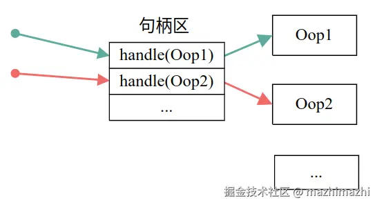 这里还涉及到了句柄,句柄也是一种设计,也能让native函数可以很好的和GC配合起来,如下所示。