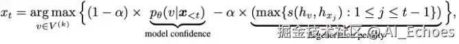 其中第一项就是原模型的概率,后面一项可以理解成一种惩罚,当前token与历史token相似度较高时,就降低当前token的概率。
