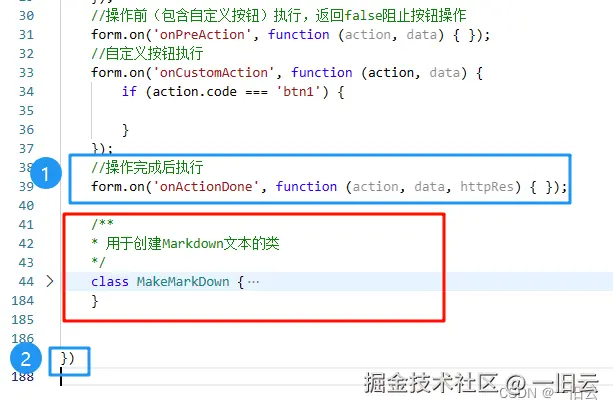 粘贴到 1 和 2 之间,这里的代码只是折叠了,点击左边的 “ 44 > ” 就能 展开 和 折叠