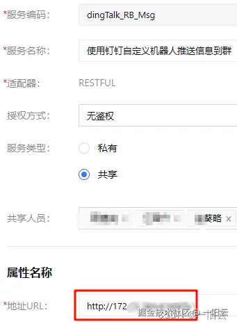 地址URL这一栏,因为是公司的网络有中转,所以这里打码。网络如果默认互通,可以直接填钉钉的地址