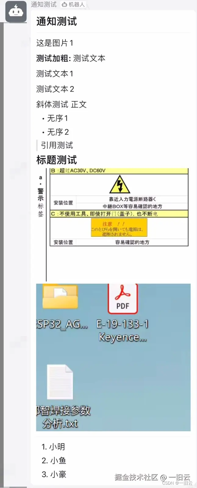 反正 title 的内容是不会发到群里的,只有 text 的内容才能发到群里。
