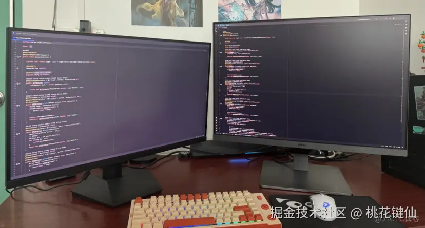 明基 RD280U 显示器,3:2 的屏幕比例,一个字”爽“。这屏幕看着更方正,多出来的高度能多显示 14 - 17 行代码,像我之前写一个复杂的函数,16:9 的屏可能只能显示函数的大半部分,后面就得一直滚,现在 3:2 的屏能把整个函数都完整的呈现出来,我一眼就能看清代码的整体逻辑,函数调用关系、循环结构、变量定义等一目了然。