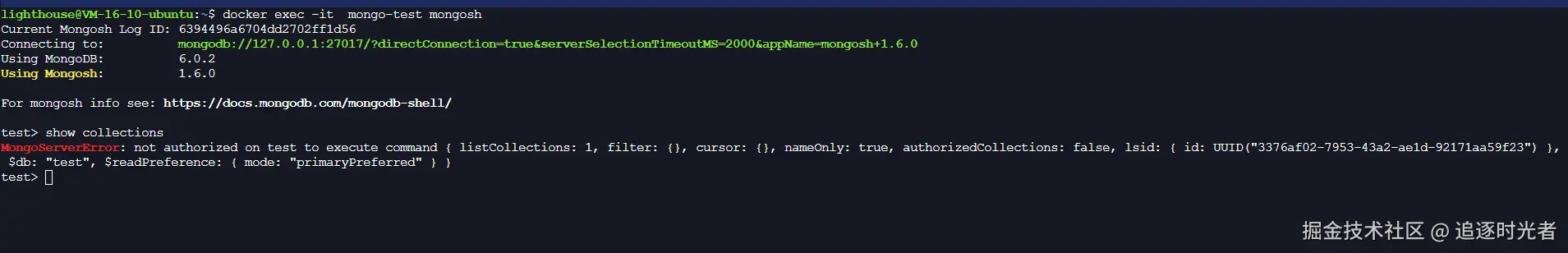 MongoDB报错"ongoServerError: not authorized on admin to execute command"