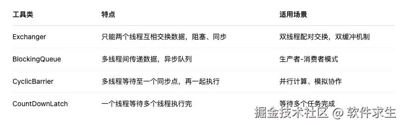Exchanger 与其他并发工具的对比