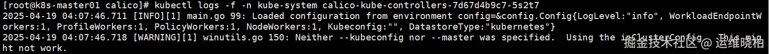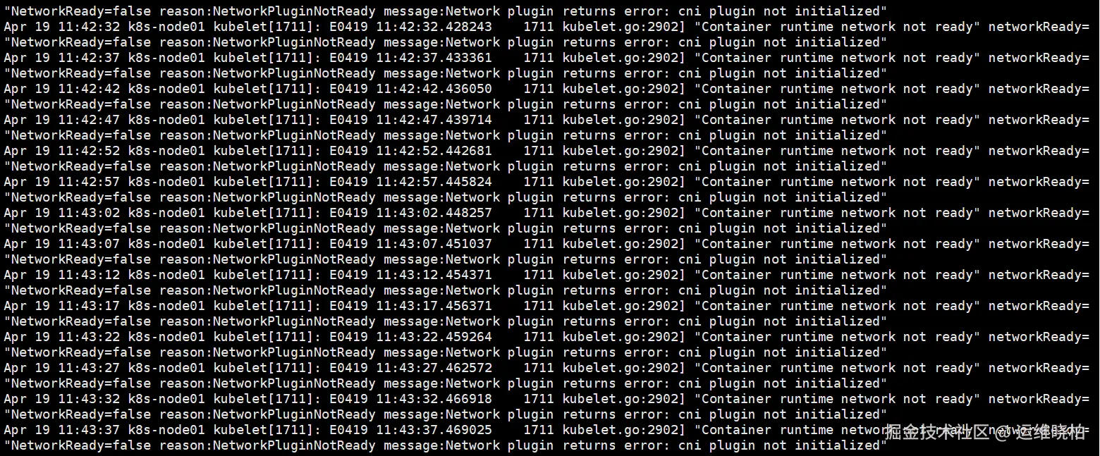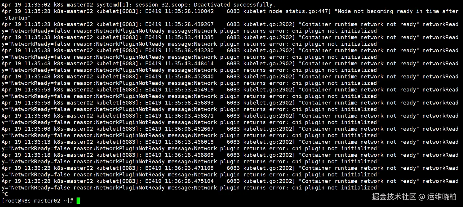 此时系统日志<font style="color:rgb(0,0,0);">/var/log/messages</font>显示只有如下两种信息为正常,安装calico后即可恢复。