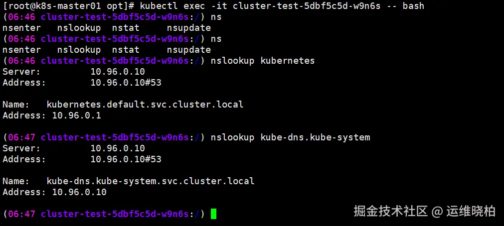 nslookup kubernetes