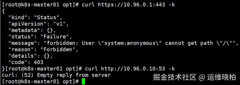 curl https://10.96.0.1:443 -k