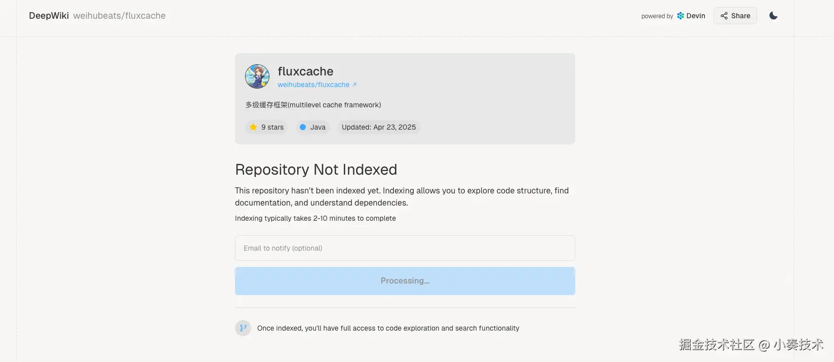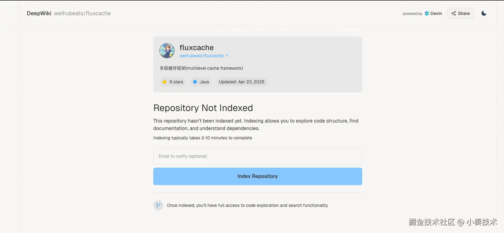 比如上面的链接就变成了https://deepwiki.com/weihubeats/fluxcache