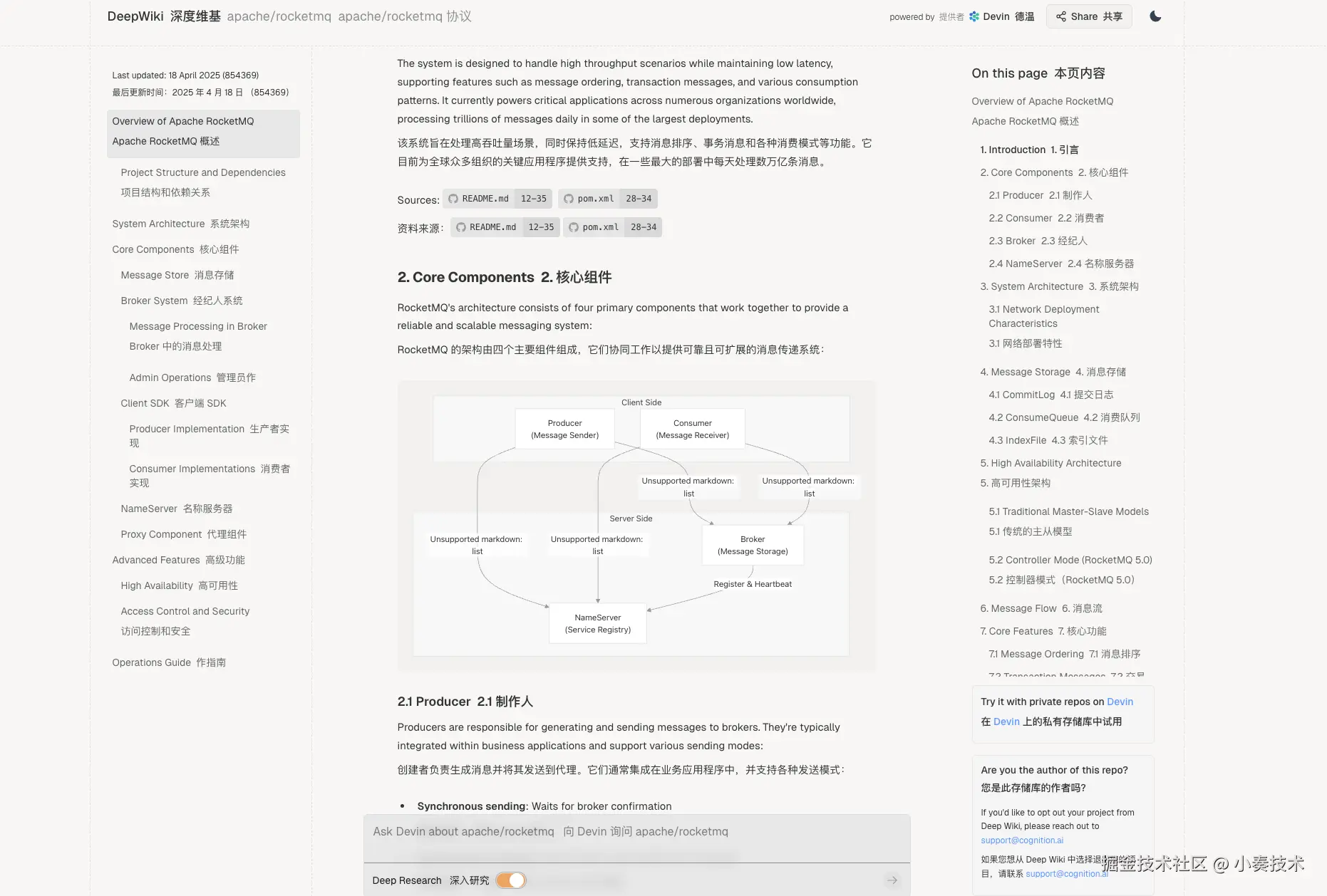 这里我们来随便看看一些生成好的项目的文档比如RocketMQ
