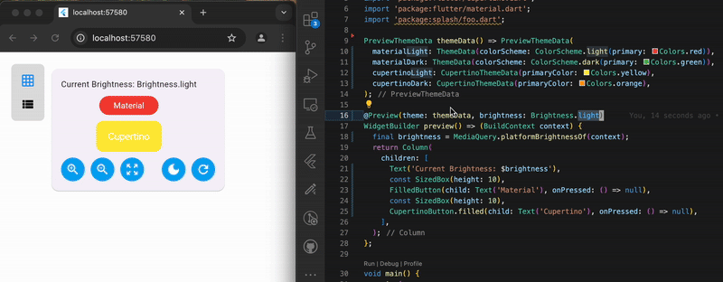 其实一直以来由于 Flutter 具备 hotload 的能力,所以在 Widget Preview 能力这部分都被认为不是必须的场景,但是基于开发者可以更直观验证一些场景,如屏幕大小、方向、字体大小和区域设置等变量对App 的影响,Widget 预览最终还是被提上了议程。