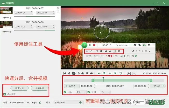 步骤3:在录制过程中,你可以随时使用软件提供的各种工具,如手绘涂鸦等。在录制结束后,你还可以使用软件自带的 “高级剪辑” 工具,对视频进行如快速分段、增加特效等操作。