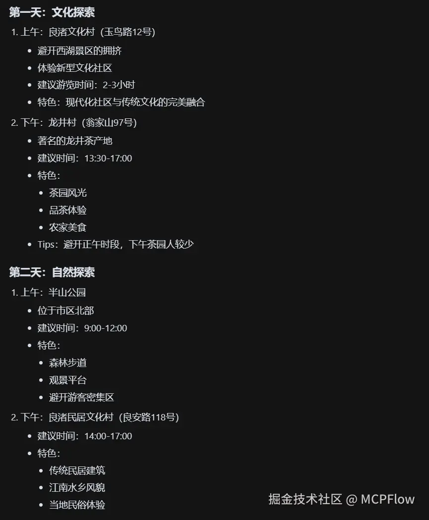最后会整理输出结果,给出值得逛的景点,包括时间安排。