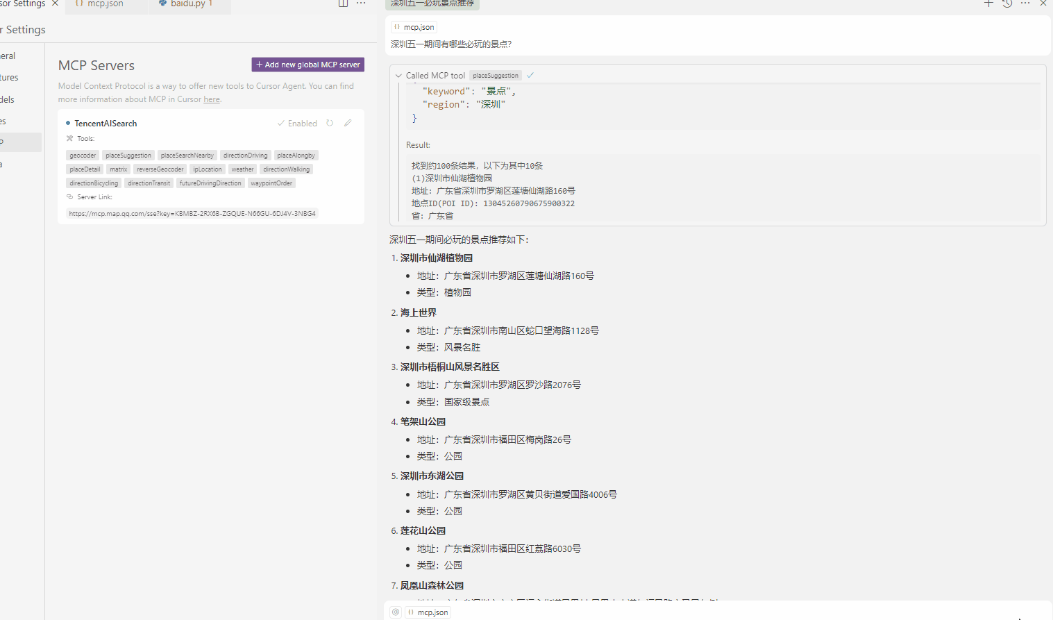 | format | 选填 | MCPServer返回结果数据格式: 0 [默认]对WebServiceAPI接口返回的JSON结果进行语义化转换后的文本内容,易于大模型理解 1 服务原始的JSON结果,可用于网页或终端开发时解析,实现开发者想要的交互效果 | format=0 |