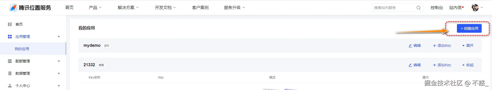 - 申请开发者密钥(Key):申请密钥(key是调用API的身份标识,作为必填参数之一传递给API接口)
