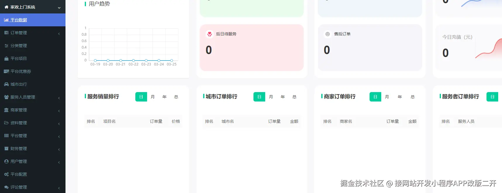 程序开发:程序名称:家政上门系统