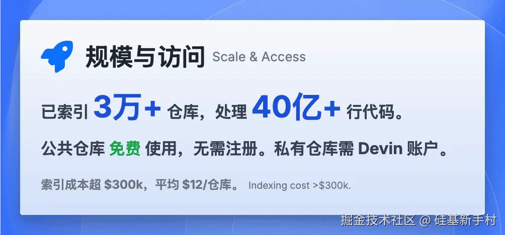 - • 私有仓库?也行! 虽然公开仓库免费,但如果你想用在自己的私有项目上,注册个 Devin 账号(对,就是那个 Devin 的账号)应该就能搞定(具体可能看后续政策)。