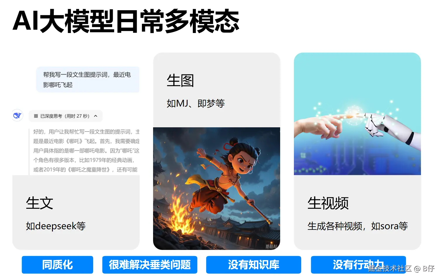 我们日常用的大模型,基本上是面对多模态类型的内容,但是也面临着一些问题
