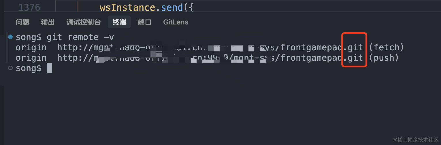 出错的git远程地址:后面少了.git