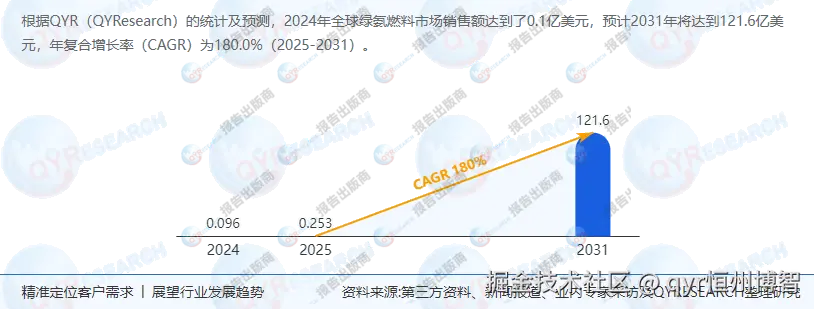 销售额:根据QYResearch最新调研报告显示,2024年全球绿氨燃料市场销售额达到了0.1亿美元,预计2031年将达到121.6亿美元,年复合增长率(CAGR)为180.0%(2025-2031)。这一增长主要得益于技术进步、成本降低以及全球对清洁能源需求的增加。