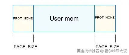 - 使用malloc申请内存(大于0x1c000 bytes时通过mmap申请) 当malloc通过mmap申请大块内存时,在返回给用户使用的内存区间头和尾分别多申请一个页,一个页PAGE_SIZE当前为0x1000,这两个页分别通过mprotect接口设置权限为PROT_NONE(无可读可写权限),可以有效防止内存越界读写问题:越界读写数据时由于无读写权限而导致用户程序异常,根据异常调用栈信息可找到相应的代码逻辑。