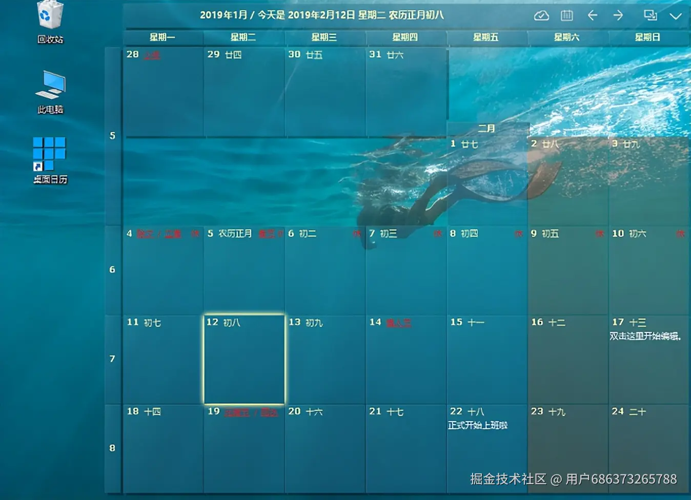 - 桌面日历