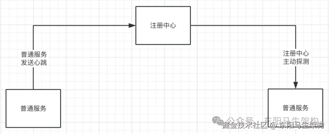 要知道⼀个服务是否健康:方式一是客户端主动上报,告诉服务端自己的健康状态。如果在⼀段时间没有上报,那么我们就认为服务已经不健康。方式二是服务端主动探测,检查客户端是否还能被探测。