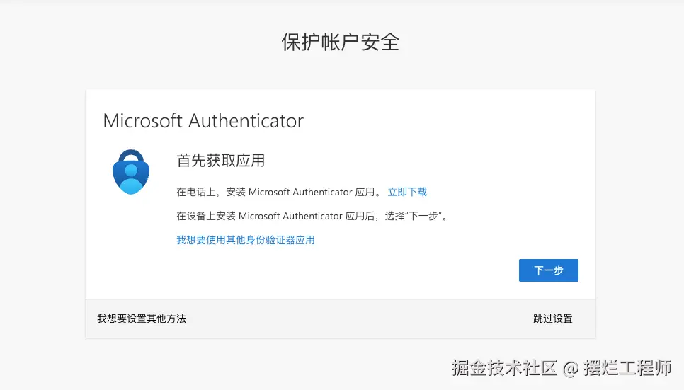 手机上安装 微软的Authenticator 应用,然后就点击下一步,跟着教程走即可。