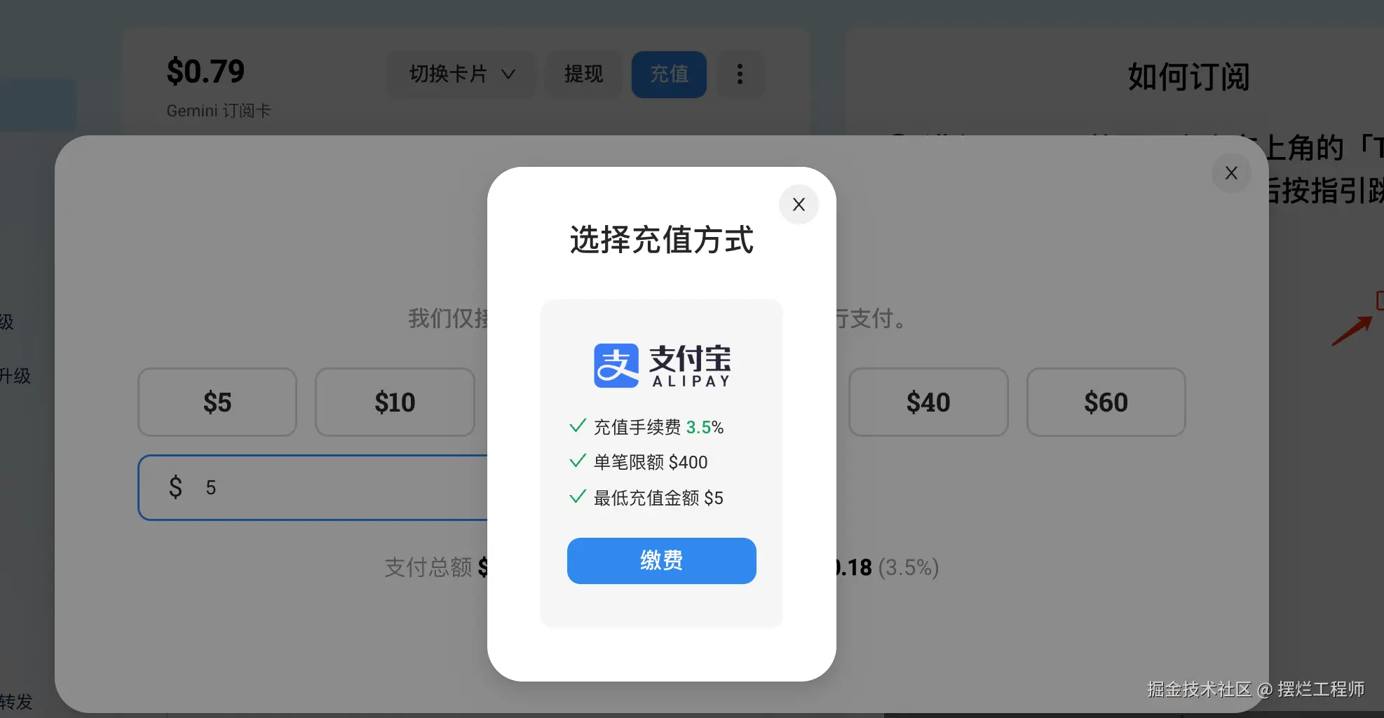 使用支付宝充值5美金,避免绑卡失败的情况。不使用的情况下,5美金可以直接提现回支付宝。