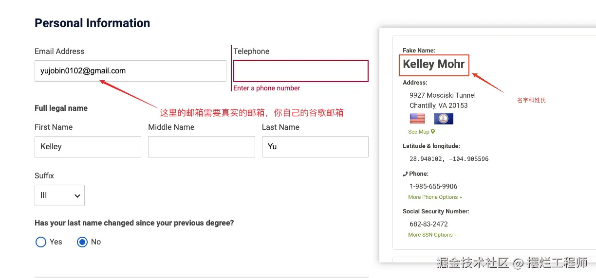 而下面这些地址信息和邮政编码都在一开始生成的身份信息里面,直接拿来填入即可。