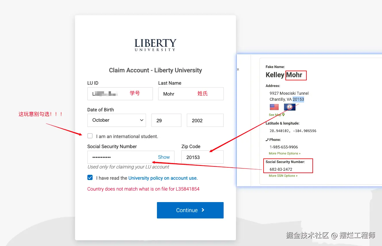 这里的LU ID 就是学号ID,然后填写姓氏,注意,下面别勾选 “国际学生” 那个选项!