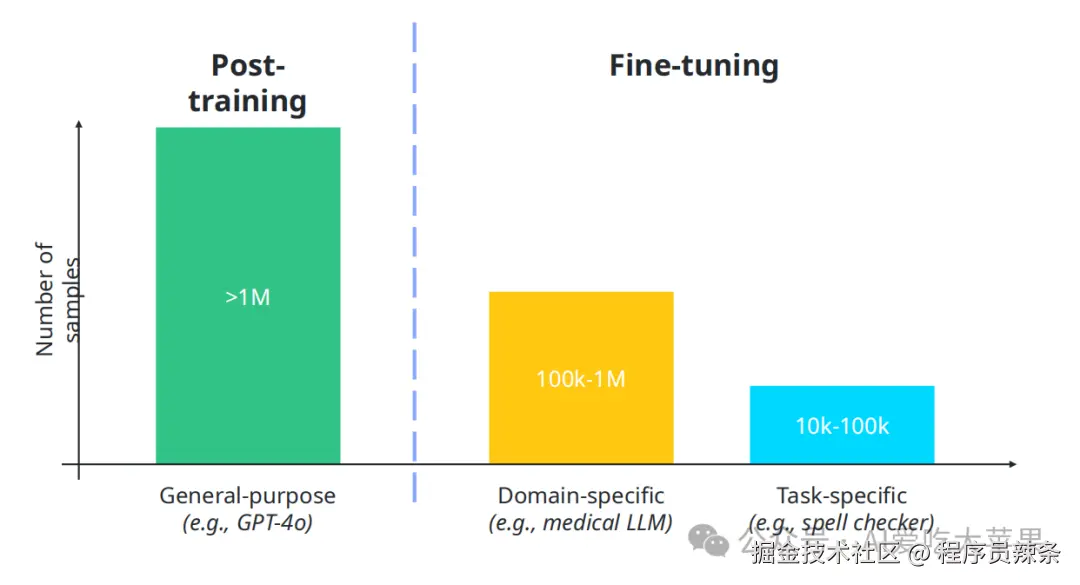 - 跟前期训练需要海量(万亿级)数据不同,后期训练的数据量 少得多。