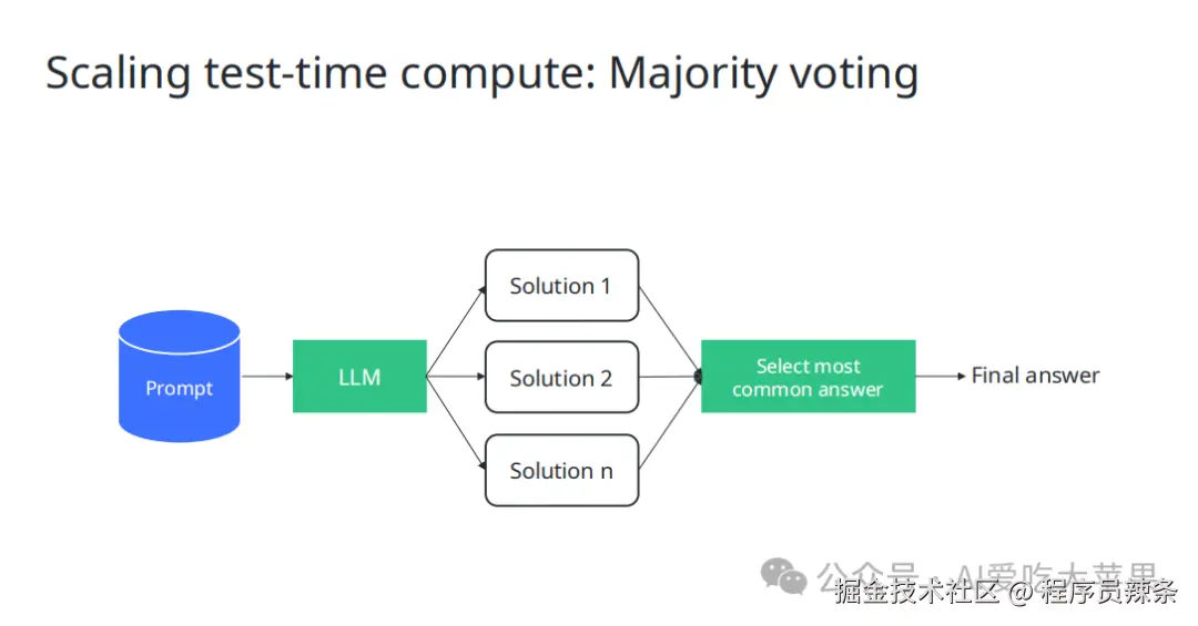 - 用规则(启发式方法)或用另一个 LLM 作为“裁判”来给生成的答案打分,筛掉差的。