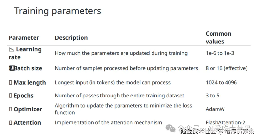 - 训练轮数 (Epochs): 数据集完整过几遍,通常 3-5 轮。