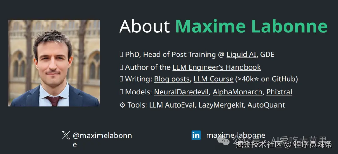 - 他对开源社区有不少贡献,比如写博客、微调模型、开发模型合并/评估工具等。