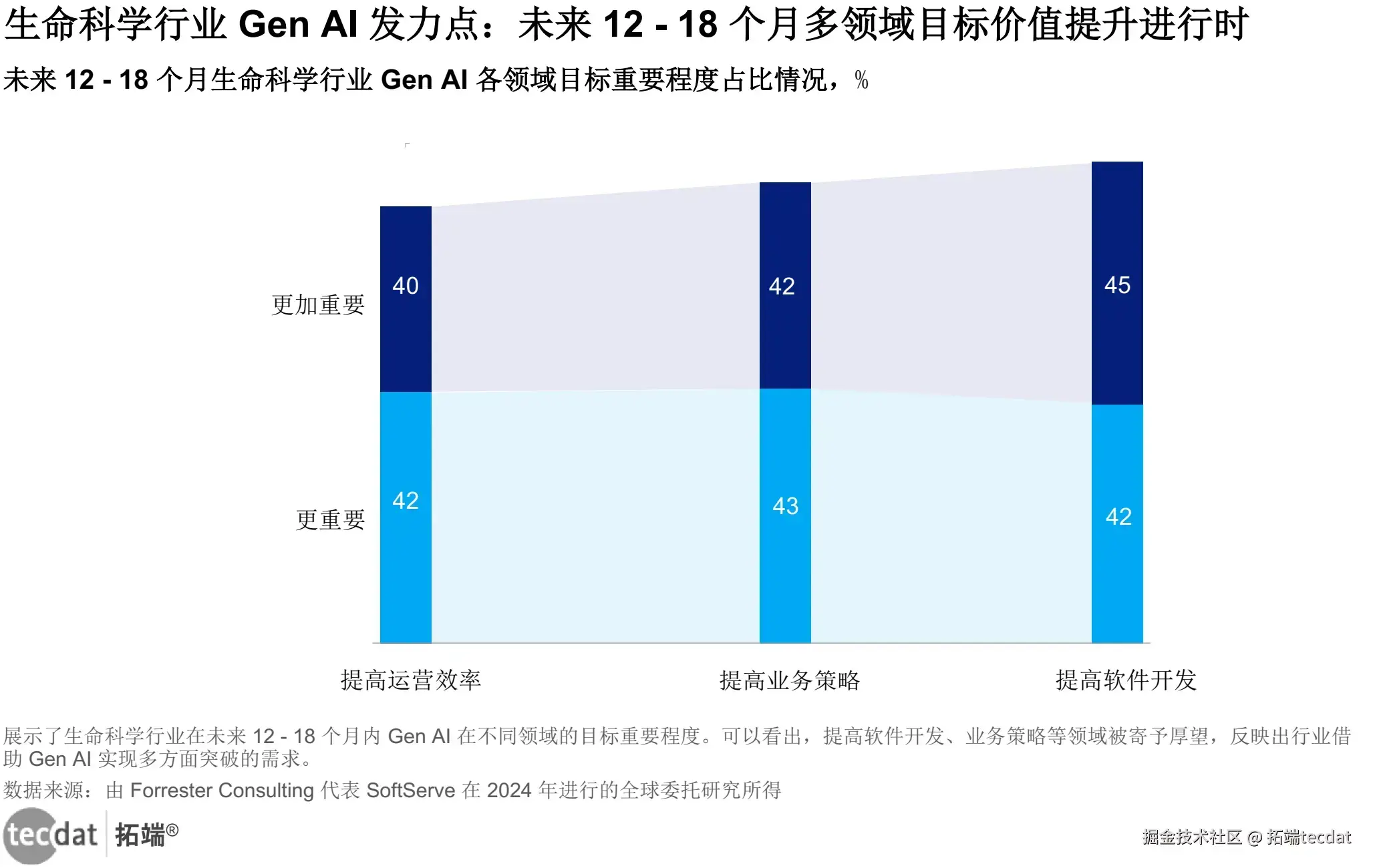 在这样的大环境下,基因AI在生命科学领域的应用也逐渐崭露头角。当下,57%的公司将改善业务策略视为顶级基因AI目标,这一比例高于行业平均水平。而且,85%的公司预计基因AI在这一领域的重要性在未来还会持续提升。