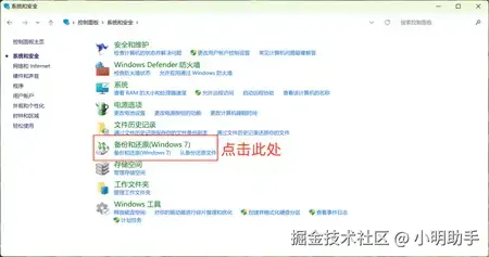 步骤1: 在电脑系统中打开菜单,搜索【控制面板】,在里面点击【系统和安全】后,再点击【备份和还原】。