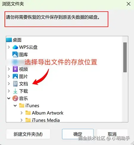 步骤3: 点击完按钮后,在弹窗中选出导出文件合适的新存放位置。