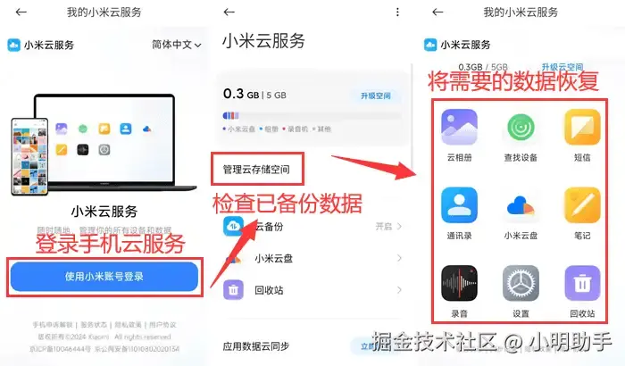 步骤1: 使用之前的账号,登录到对应的云服务平台,查找手机相关的数据。